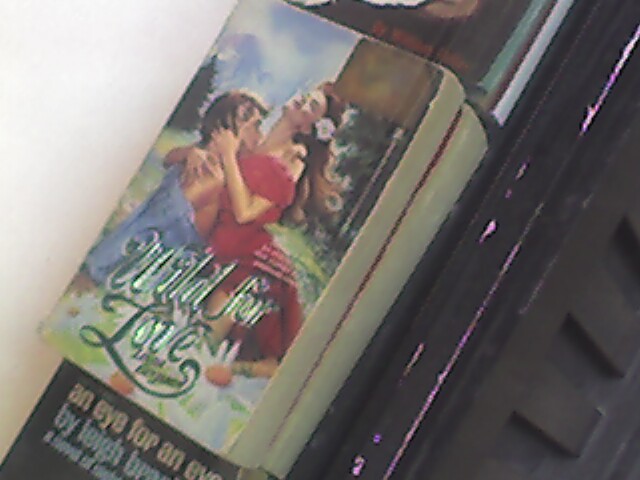 There were also vintage romances in the border of stacked books. Think that red gown is making her wild for love? Or is it her absurdedly bony shoulders?