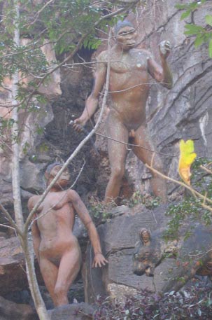And THEN, there’s the evolutionary display at Sudwala Caves and Dinosaur Park. They have a pair of lifesized Australopithacus models. And I do mean models: my husband says that he didn’t know that they had invented hair depilatory 100,000 years ago. I say it’s all in the bone razors. But I also figured it was a good antidote to the Creationism Museum in KY. I doubt this little museum could have survived in the good ol’ US of A.