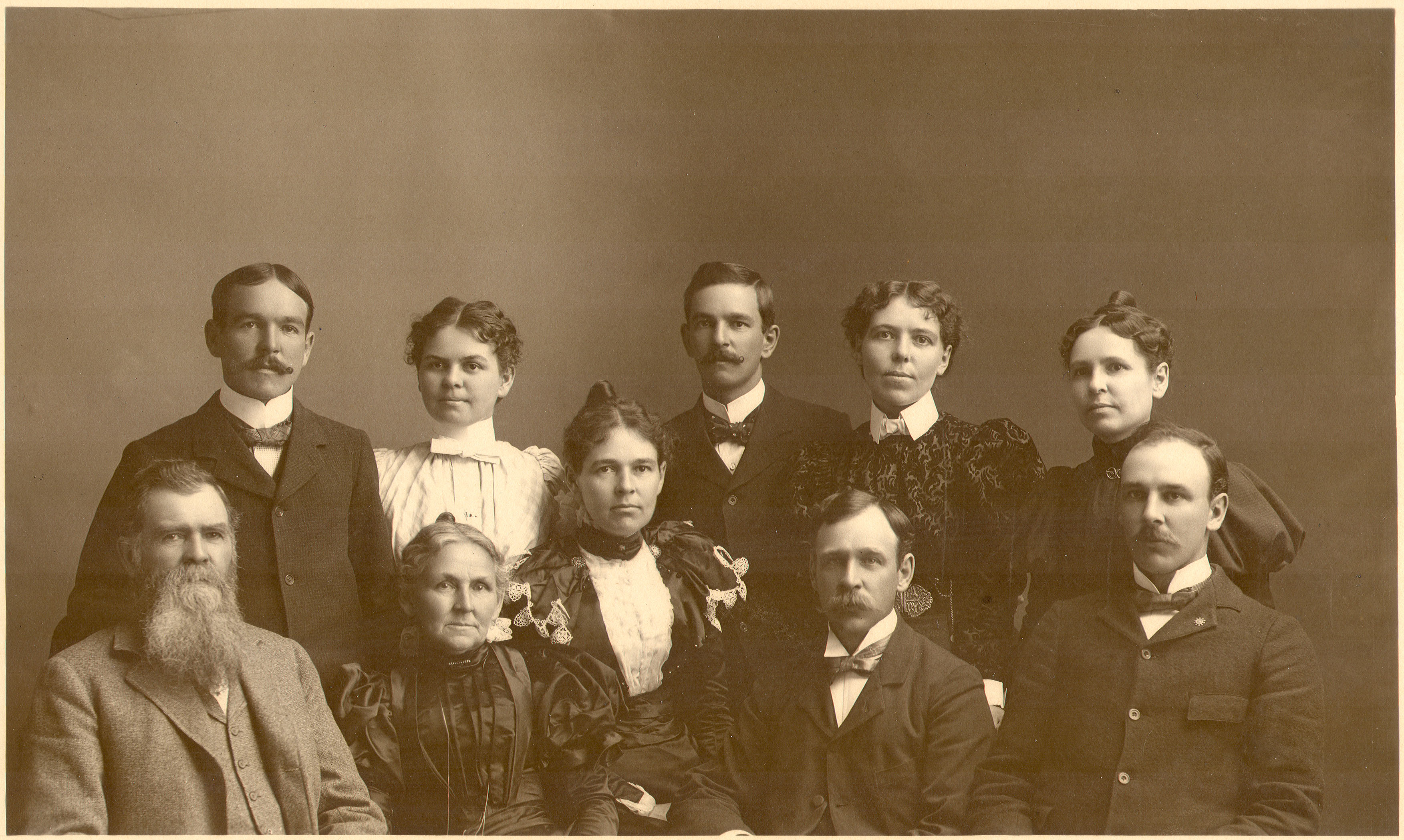 @rod atkinson: If it’s OK for me to contact you (we’re related, yay!) SB Sarah will send me your email address. I have some other photos I can send you, and I’m so excited about the book of letters!. Here’s the members of the Blick family in the group family photo as listed in my grandma’s handwriting. from context the names in parentheses would be the names the women married into: