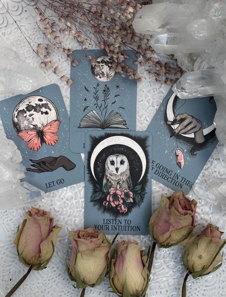 For my occultist Bitchery, how gorgeous is this 13-card oracle deck. This is meant to be a mini deck for on-the-go readings. The artwork was all hand-drawn and I’m completely in love with the color palette. I also get some vague Labyrinth vibes.