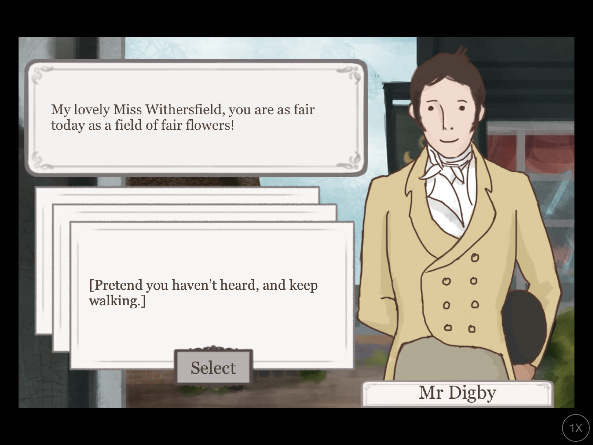 You play as a woman in a Regency setting, interacting with townspeople and learning certain skills as you try to find a husband, much to your mother’s insisting. The game was intuitive to learn; it also includes helpful little tutorial bubbles that pop up at the beginning as you play.