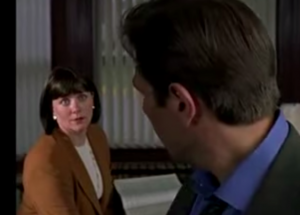 Both Chester and Carly’s alibis check out, and Jack and his Chief concoct a way of trapping Chester. Elliot and Mrs K are in Carly’s apartment (again!) when a news bulletin announces that Chester has been arrested for double murder, all because his former lover (shown onscreen in a bikini and frighteningly big hair) dobbed him in as she was supposed to be his alibi.