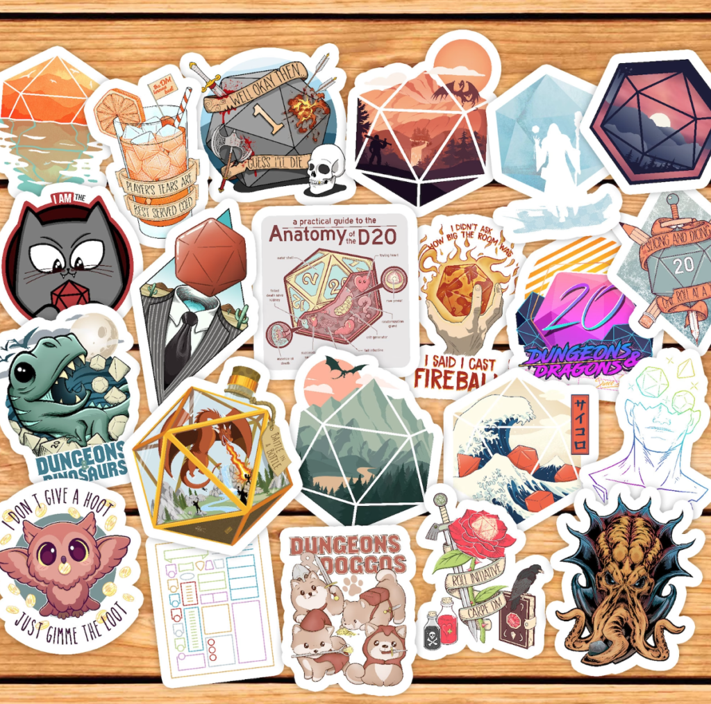More stocking ideas! This sticker pack comes with over two dozen Dungeons & Dragons themed stickers. If you like some of the designs, this shop also offers them on t-shirts and other apparel.